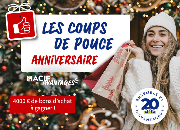 * Jeu sans obligation d’achat, ouvert du 3 novembre au 9 novembre 2025, réservé aux sociétaires Macif personnes physiques majeures. Une seule participation par numéro de sociétaire est acceptée pour toute la durée du jeu. La désignation des gagnants s’effectue selon le principe de l’instant-gagnant. Les gagnants seront contactés à l’adresse email qu’ils auront renseigné sur leur formulaire de participation. Détails du jeu dans le règlement complet.